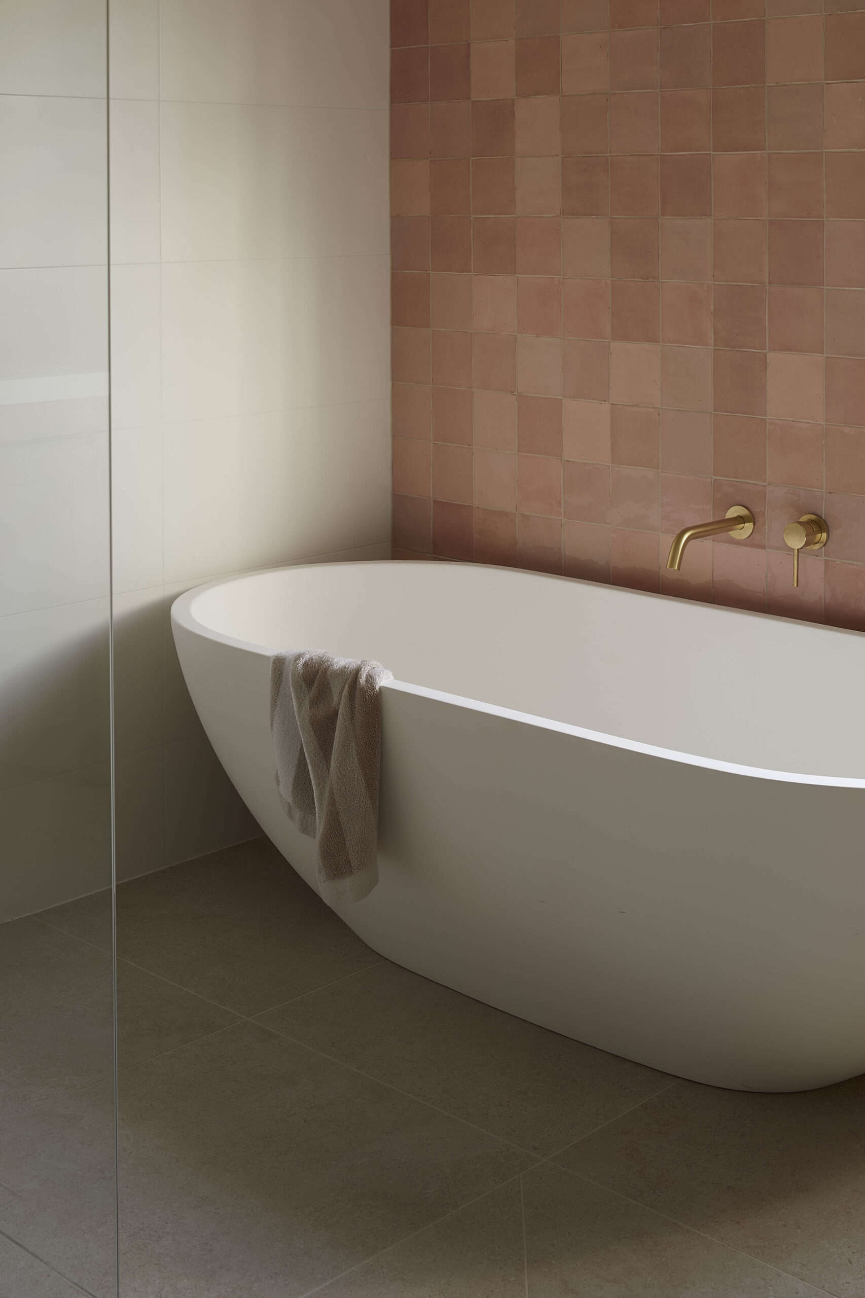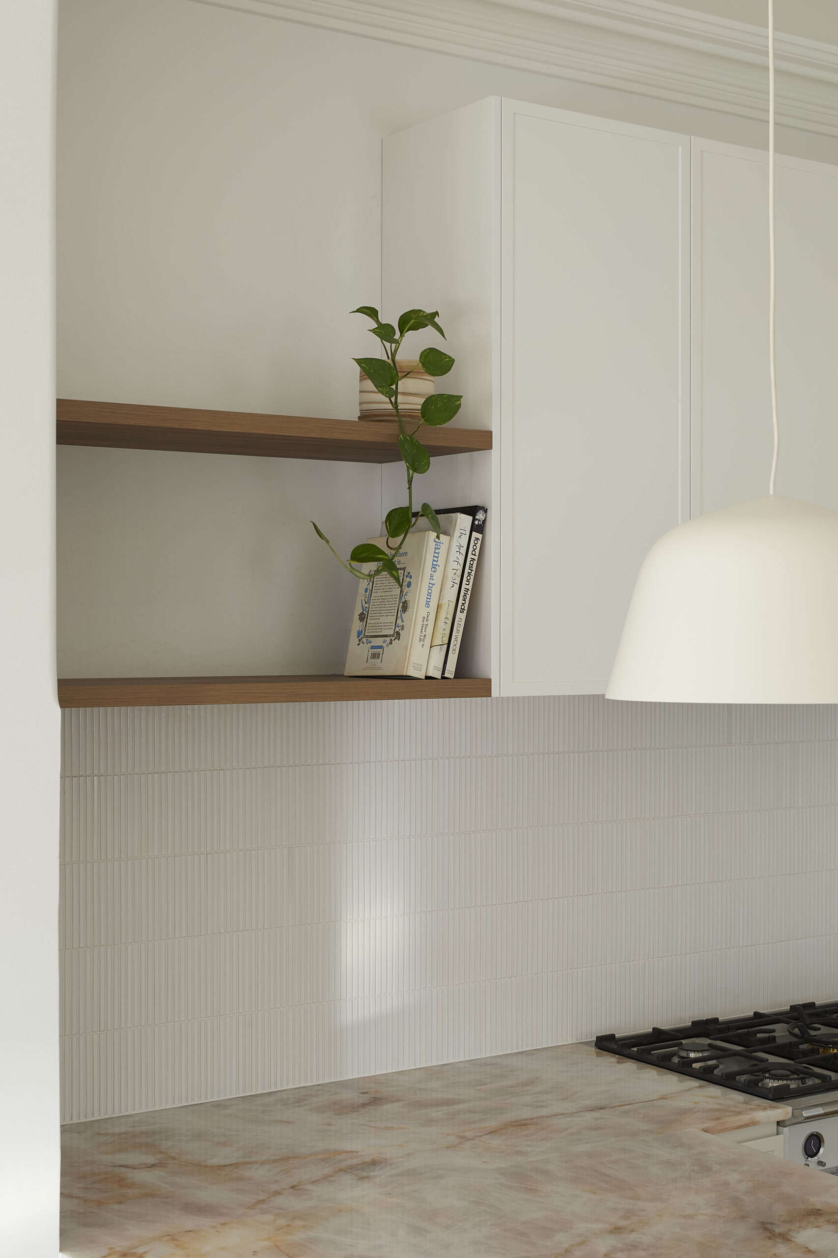 This Hamilton East heritage renovation balances timeless charm with modern elegance. The interiors feature natural finishes, including soft pink and brass-accented bathrooms designed for a fresh, inviting feel. The kitchen, centered around a hand-selected Crystallo Rosa Polished Quartzite benchtop, is a standout, complemented by a refreshed laundry with shaker doors and brass details. Externally, a new spotted gum deck and ceiling extend the living space. Addressing structural challenges in the existing double-brick home, we collaborated with engineers and clients to achieve a high-quality restoration while respecting budget constraints, ensuring a beautifully renewed and enduring home.